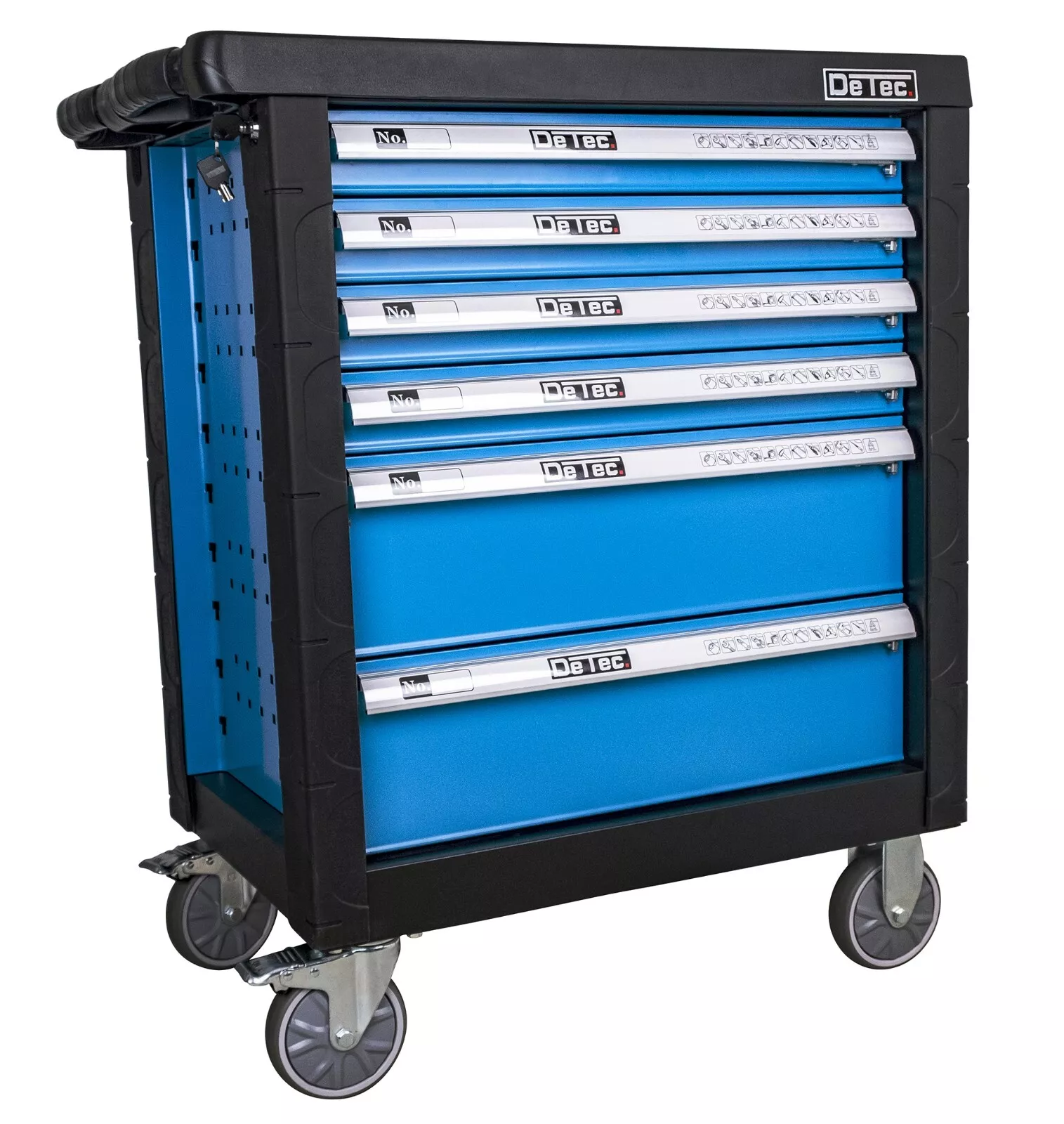 Cette armoire à outils DeTec, de grande taille, offre une solution de rangement robuste et sécurisée grâce à son métal résistant aux rayures. Les 6 tiroirs permettent d’organiser efficacement vos outils, et la clé de fermeture garantit un stockage sécurisé. Sa conception en acier assure la durabilité et la résistance aux impacts.