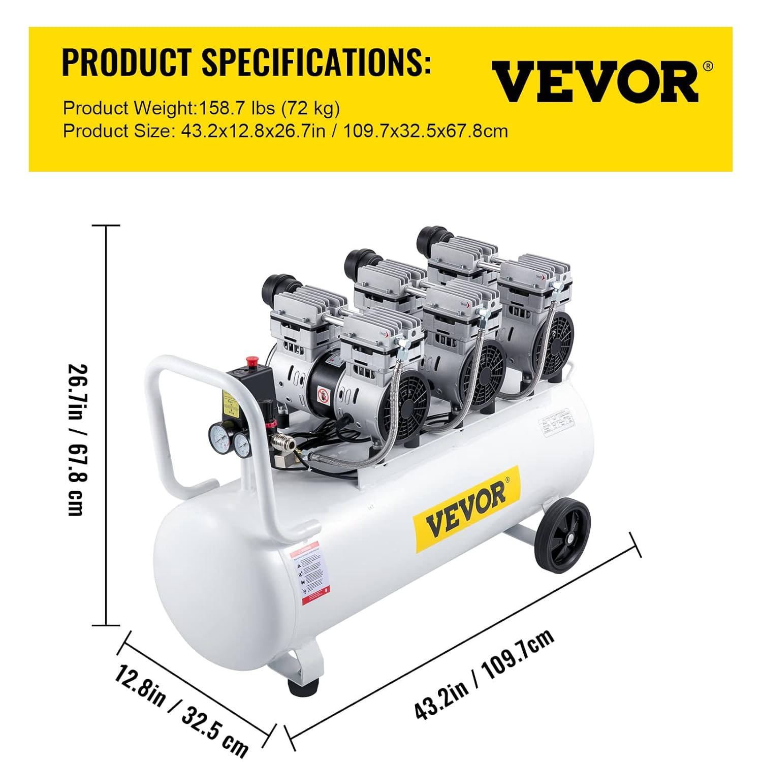 Compresseur d’Air Silencieux VEVOR 100 L – 3 CV, Sans Huile, 8 Bar, 495 L/min – Moteur Cuivre